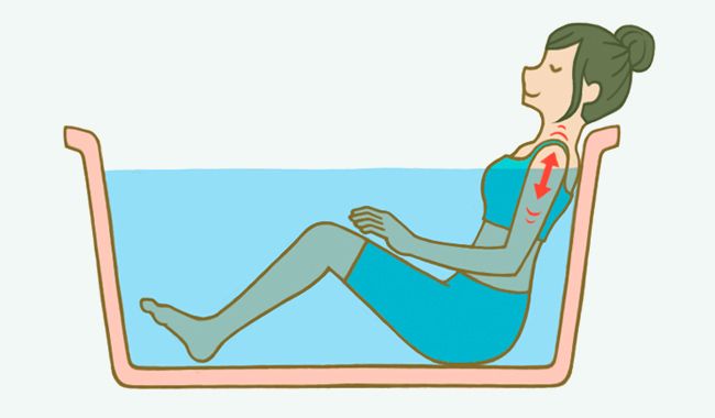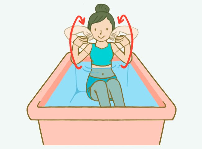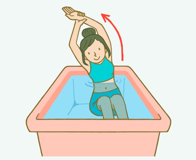 - 背筋をまっすぐにして座り直します(湯船にもたれかからないように)。