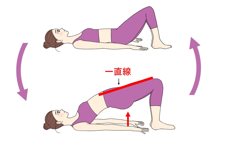 ・お尻を締めながら体が一直線になるまで骨盤を上げて5秒キープ