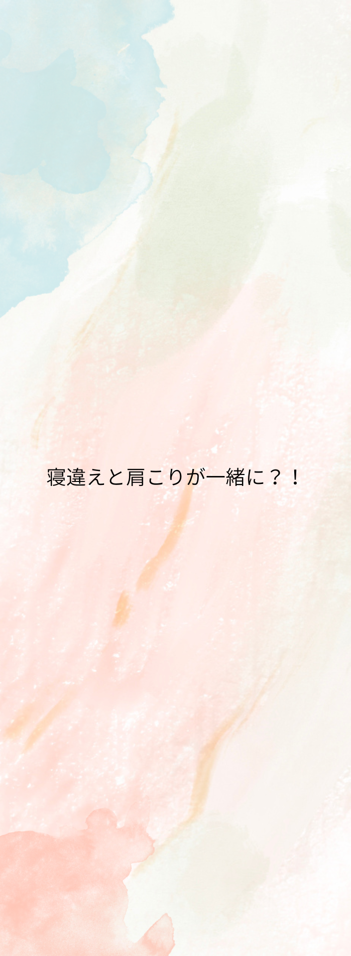 このように、単独で起こるだけでも辛い『寝違え』と『肩こり』が一緒に起こってしまうと不安になりますよね、、