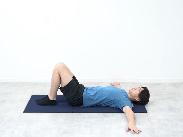 仰向けで膝を立てて、両手を真横に広げて寝ます