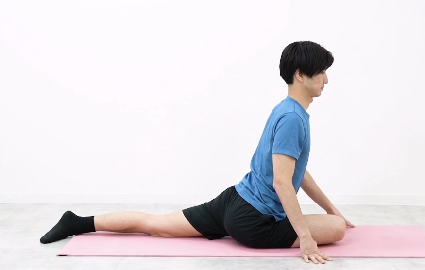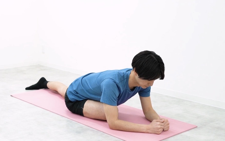両肘を着き、前に重心を移動させてお尻を伸ばしていきます