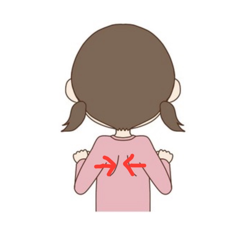 →背筋を伸ばして立ち、胸を開きながら肩甲骨を後ろに寄せる