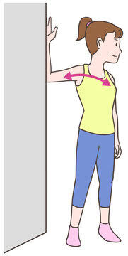 壁に腕をつけたまま、少し体を捻るor前に出る