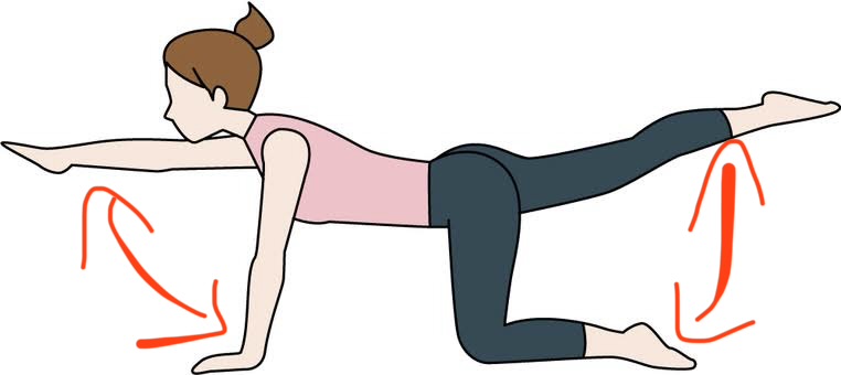 →四つん這いで対角の手と足を床と平行になるまでゆっくり伸ばします