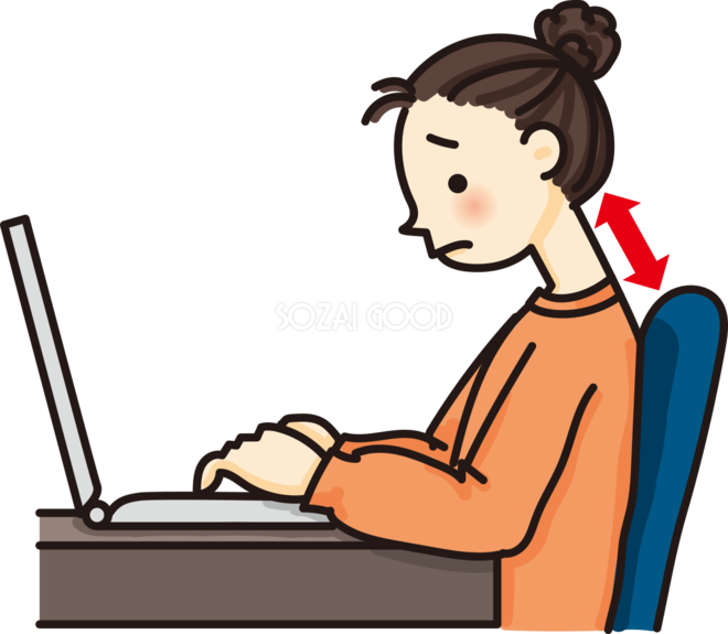 下を向いている時間や、猫背になっている時間、頭が前に出てしまっている時間が長いほど上記の筋肉は硬まりやすいです
